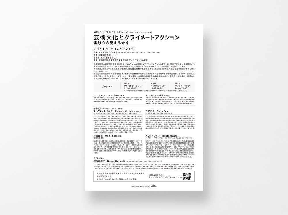 アーツカウンシル・フォーラム「芸術文化とクライメートアクション~実践から見える未来~」キービジュアル・フライヤー・SNS投稿用画像